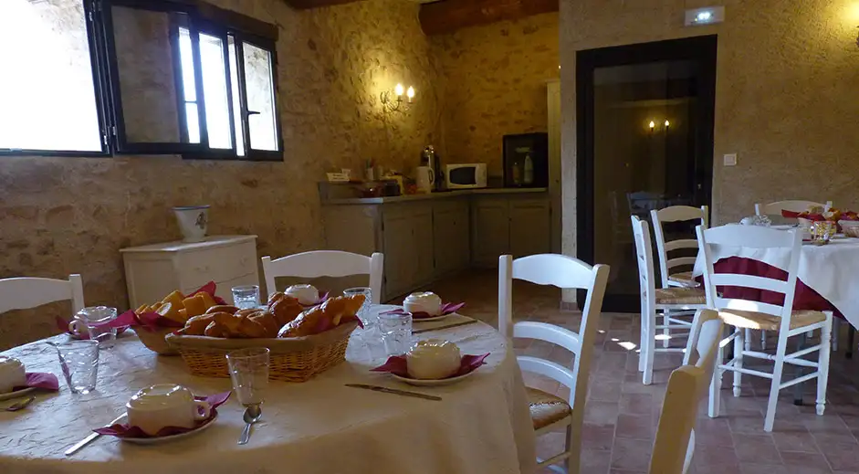 Les invités occupants les chambres auront un petit déjeuner à la française servi dans une salle lumineuse et conviviale.