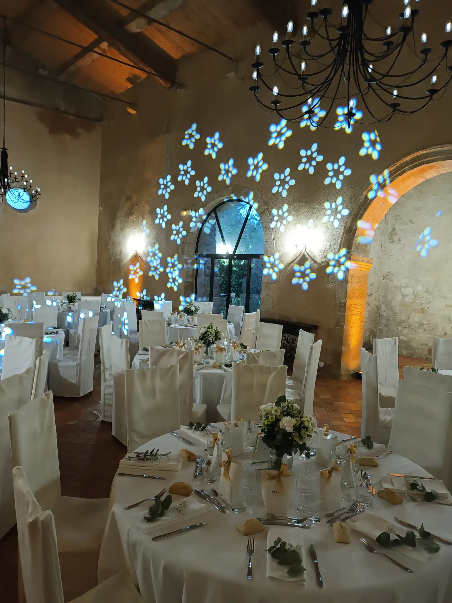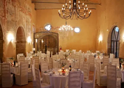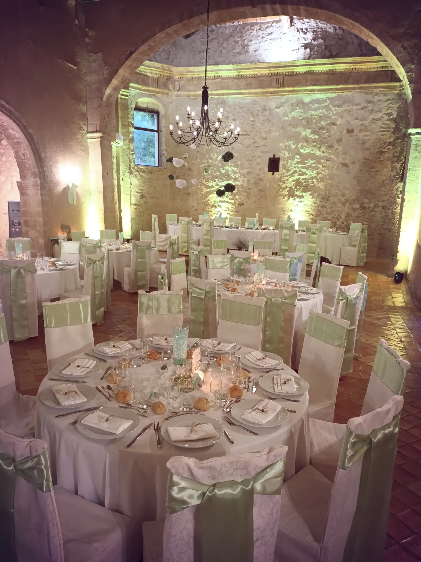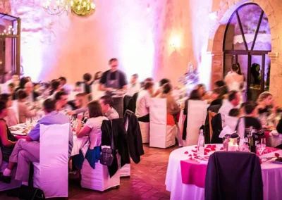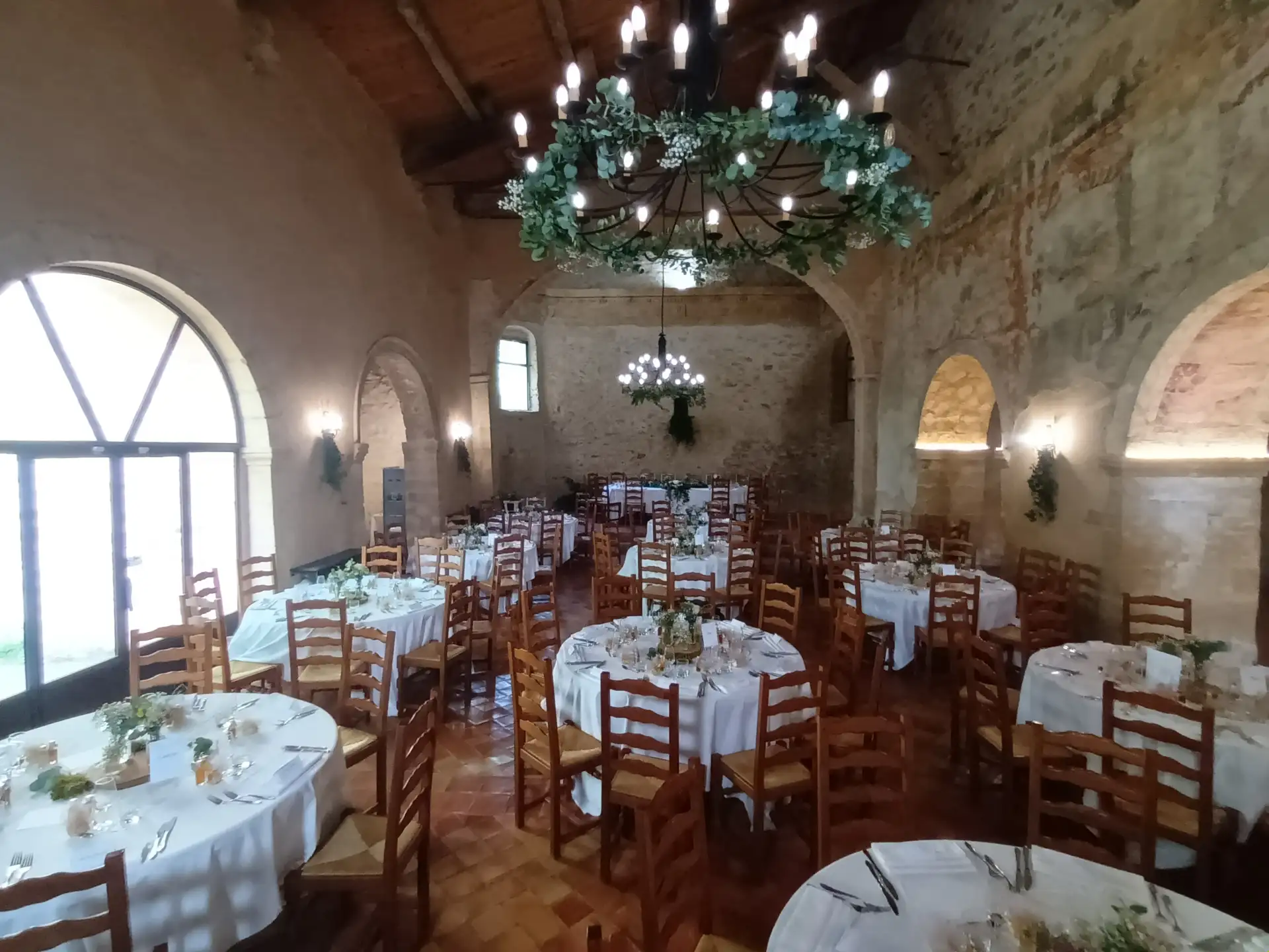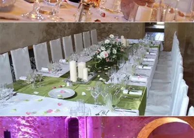 La salle principale, jouxtée par une salle voutée, (190 m² au total) peut accueillir jusqu’à 140 personnes pour toutes vos réceptions (mariages, séminaires, réunions de famille, repas d’entreprise, concerts…)