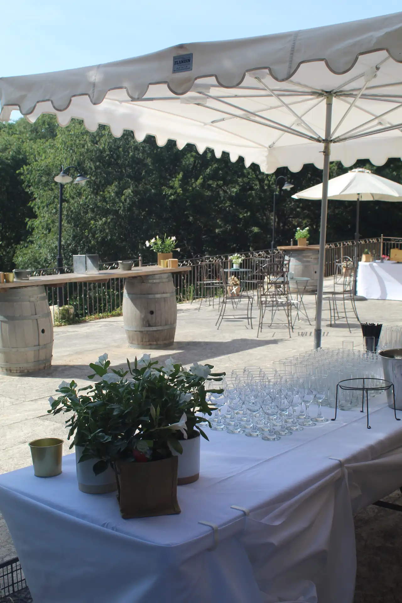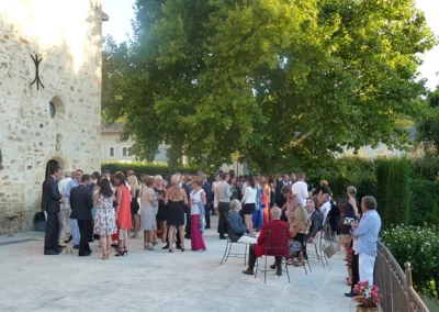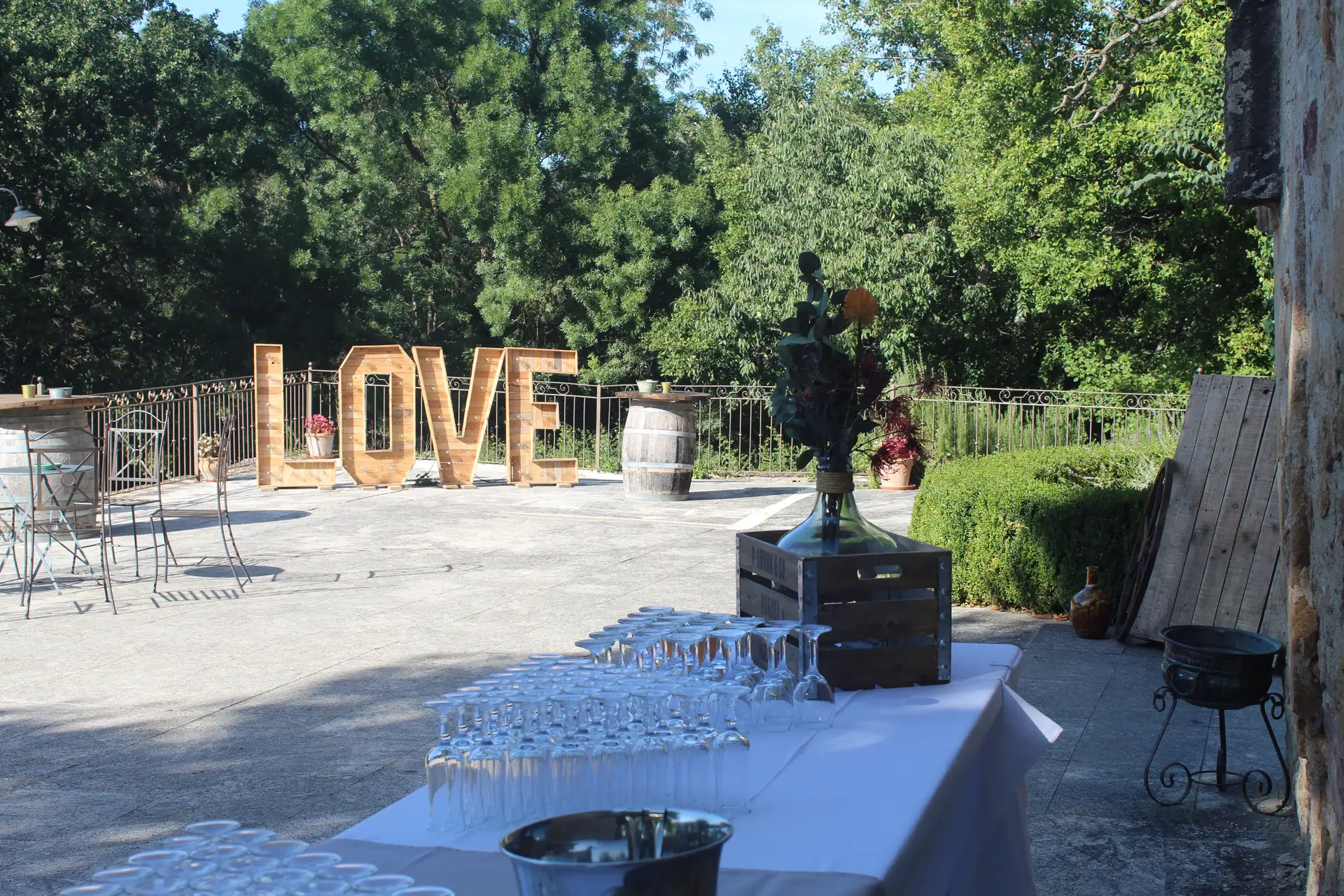 Située au centre du domaine, devant la salle principale, une grande terrasse surélevée de 190m2 vous permet accueillir vos convives en extérieur pour toutes vos réceptions (mariages, séminaires, réunions de famille, concerts…).